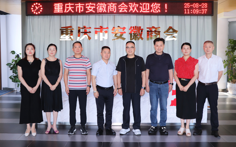 2025年8月28日,安徽国际徽商交流协会副会长、安徽茶红天下茶业股份有限公司董事长梅国文等一行五人到访商会。重庆市安徽商会会长梅锋,党支部书记、常务副会长邱金根,秘书长臧巧利,副秘书长张金宝热情接待了来访人员一行。